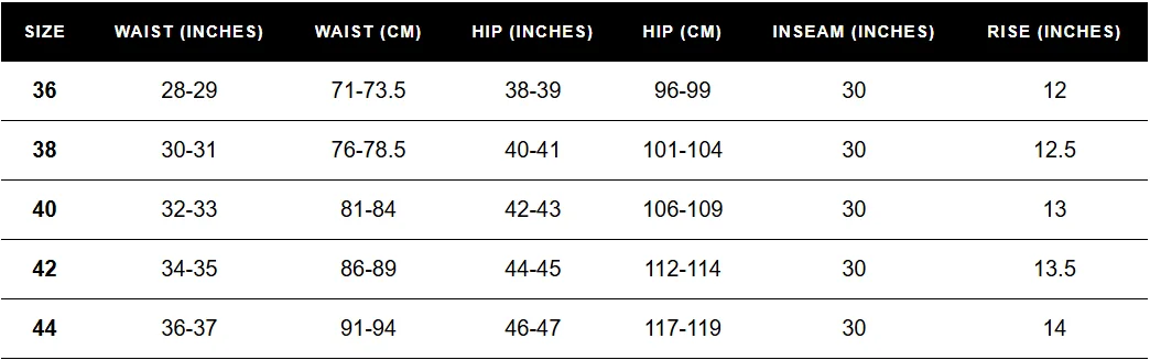 - Inside leg length approx. 80 cm in each size